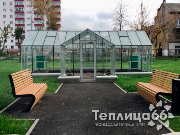 Это теплица премиум класса, изготовленная из поликарбоната, собранная на алюминиевом каркасе, которая пользуется высоким спросом на рынке.